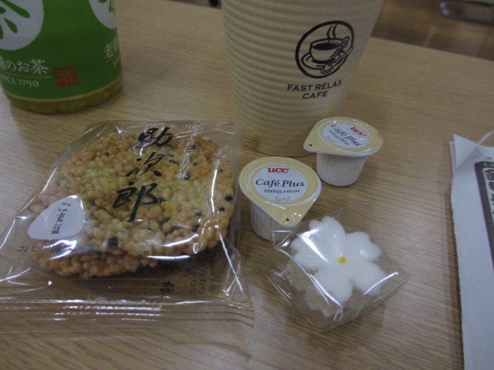 ・お茶請けは播磨屋 煎餅「助次郎」 、 京都 半生菓子「桂利久」