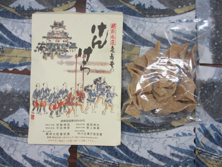・おやつは、福井のけんけら、伊勢のいといん煎餅、セブンイレブンとろりんシュークリーム
