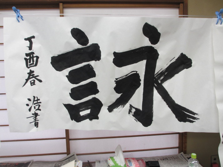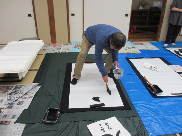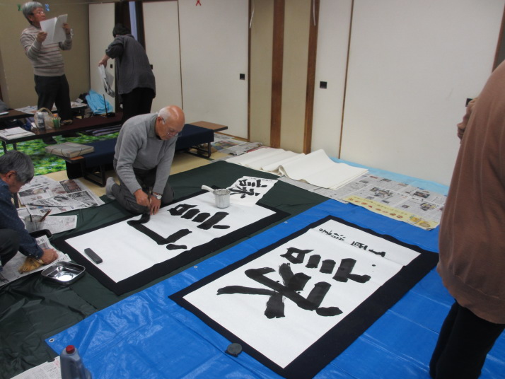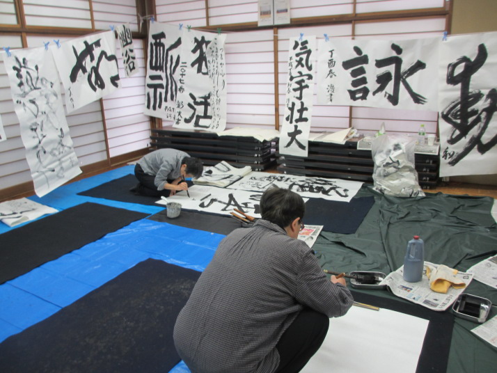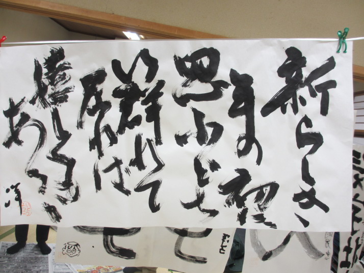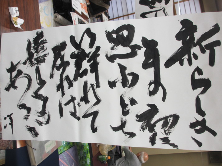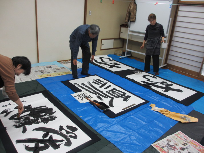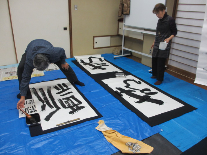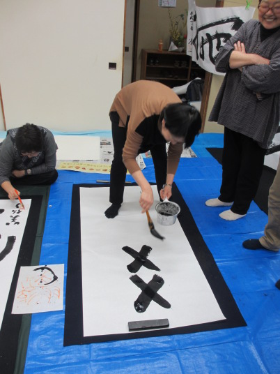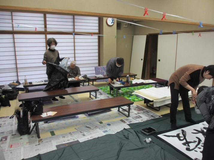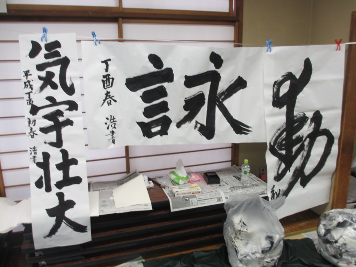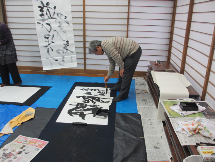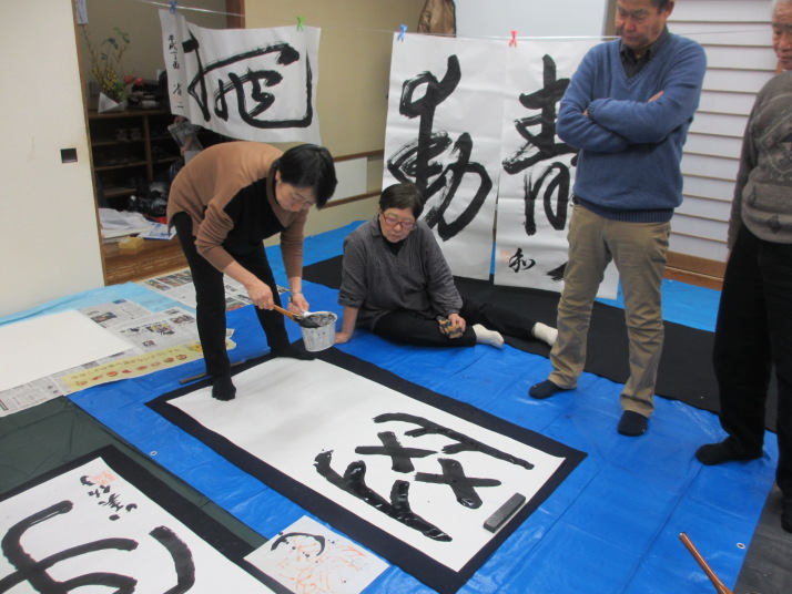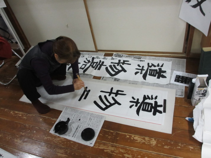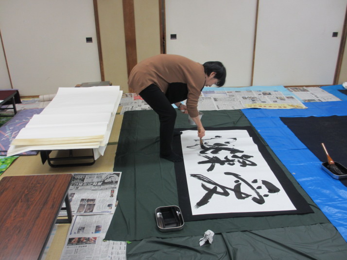 内容: ・部屋には完全防備のシートで汚れ対策して、特大の用紙に「書初め」、