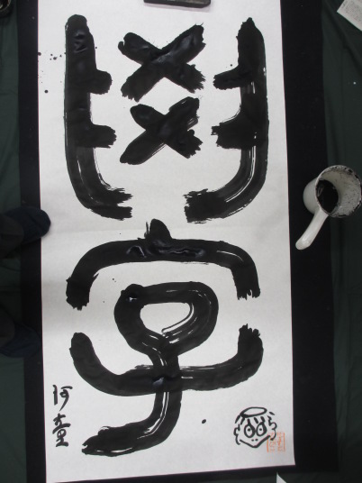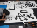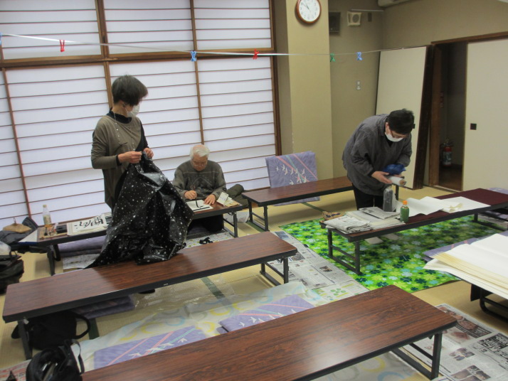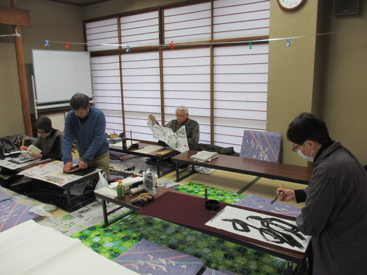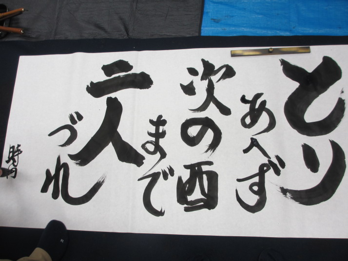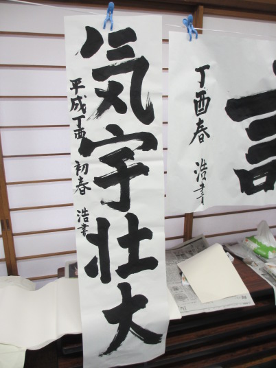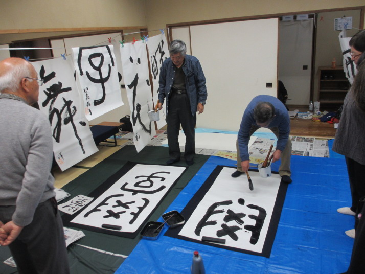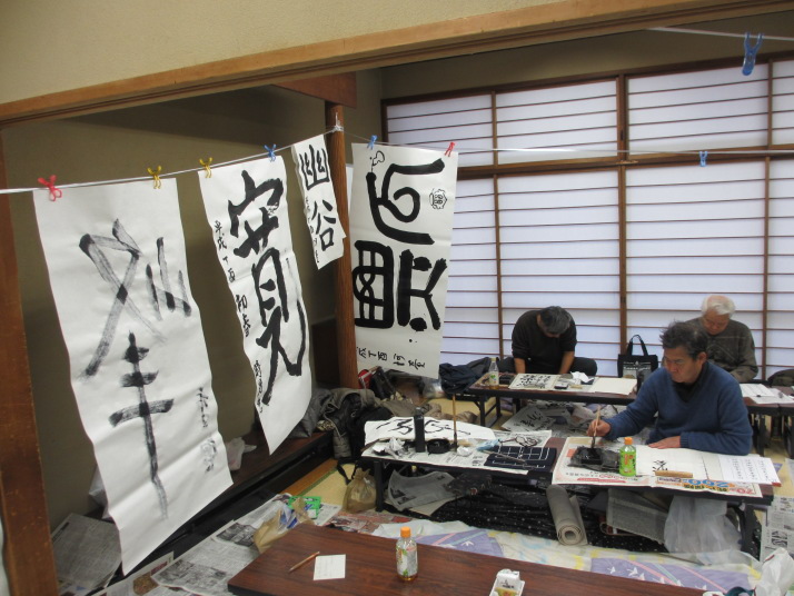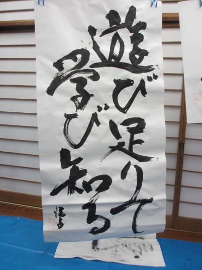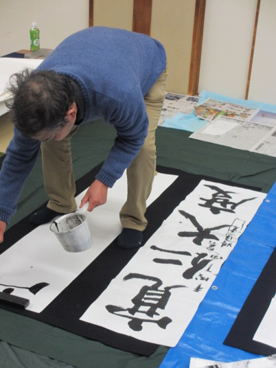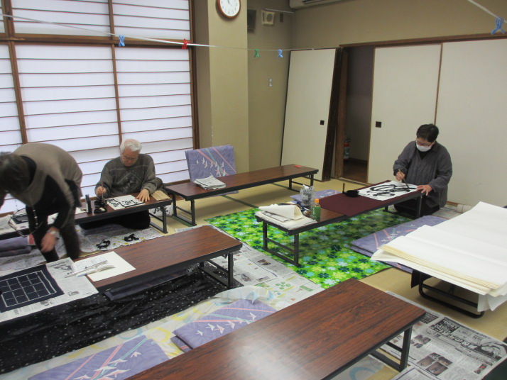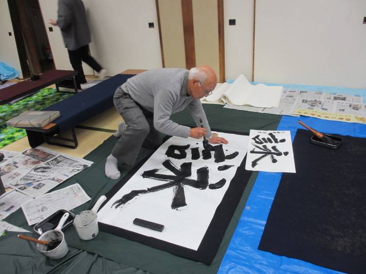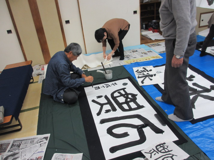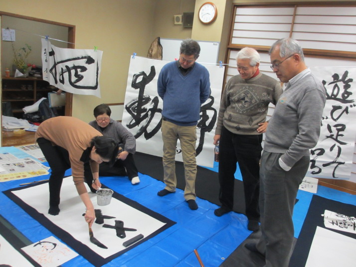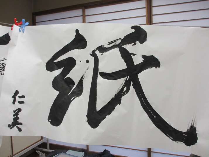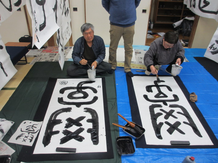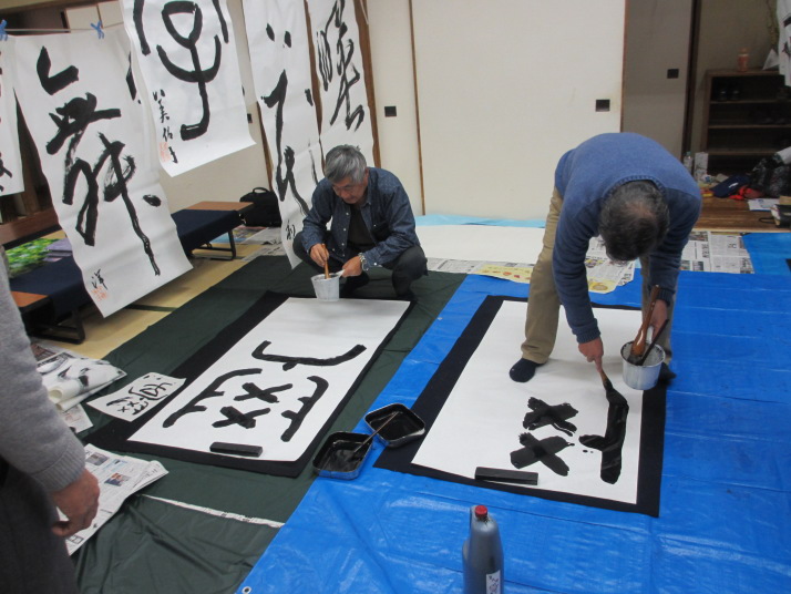 内容: ・部屋には完全防備のシートで汚れ対策して、特大の用紙に「書初め」、