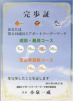 参加日・コース:2017年5月21日(日) 成田・義民 20kmコース
