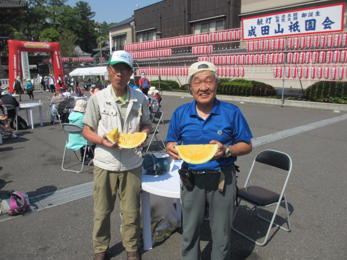 30℃の炎天下を歩いた後の冷えたスイカは最高 |