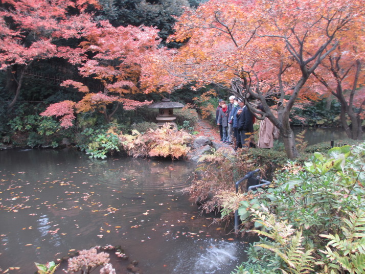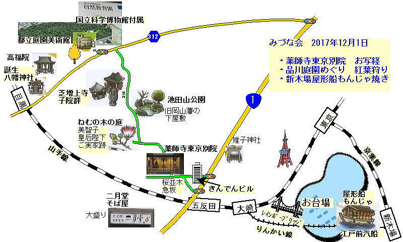 薬師寺東京別院お写経 ・ 品川庭園紅葉狩り と 屋形船もんじゃ焼き