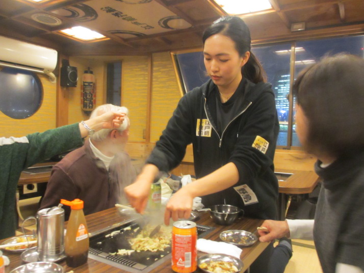 りんかい線・・・新木場 15:20着・・・送迎バス15:40・・・・江戸前汽船 もんじゃ焼き16:00~18:00