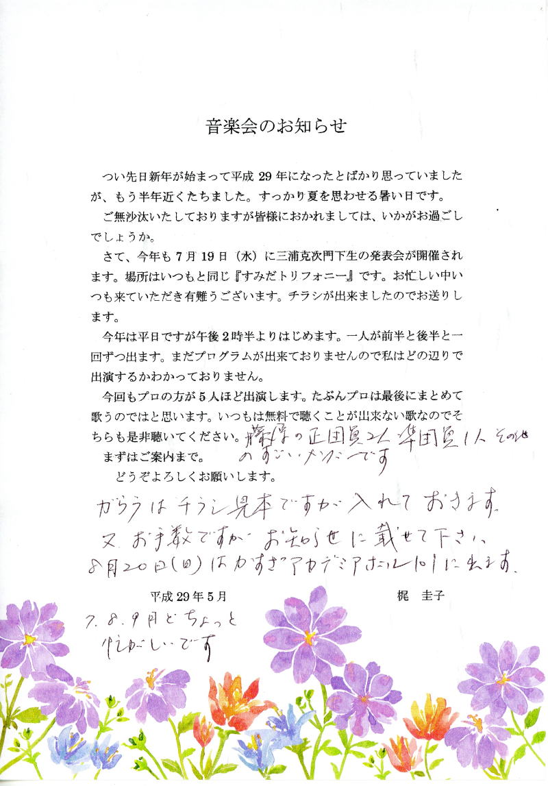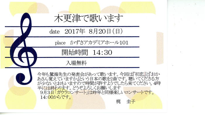 2017年7月19日(すみだトリフォニー)、8月20日(かずさアカデミアホール)、9月3日(袖ヶ浦市民会館