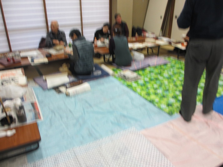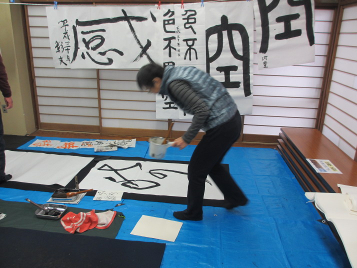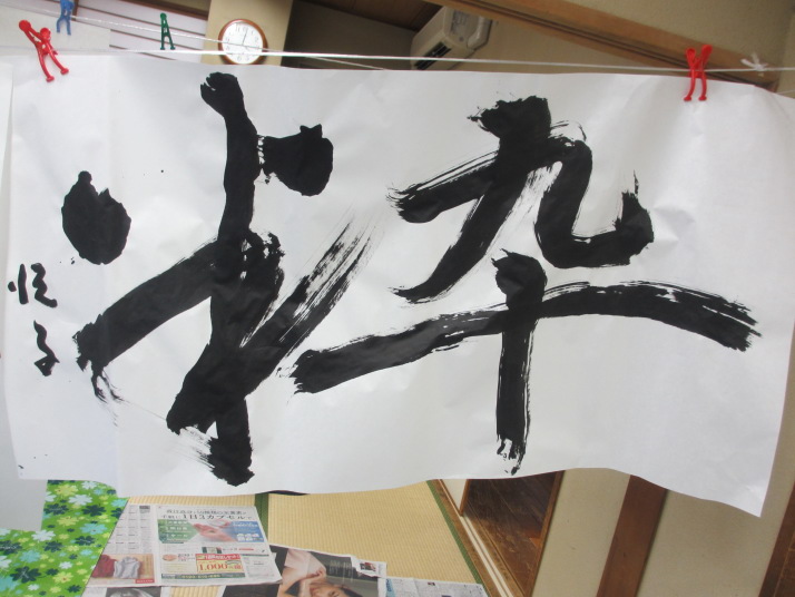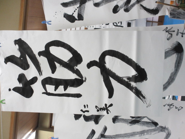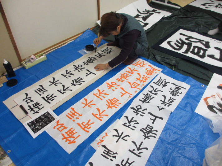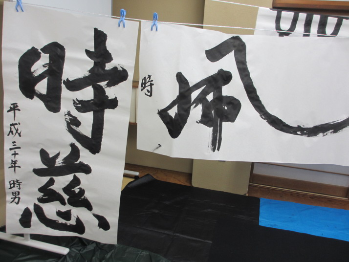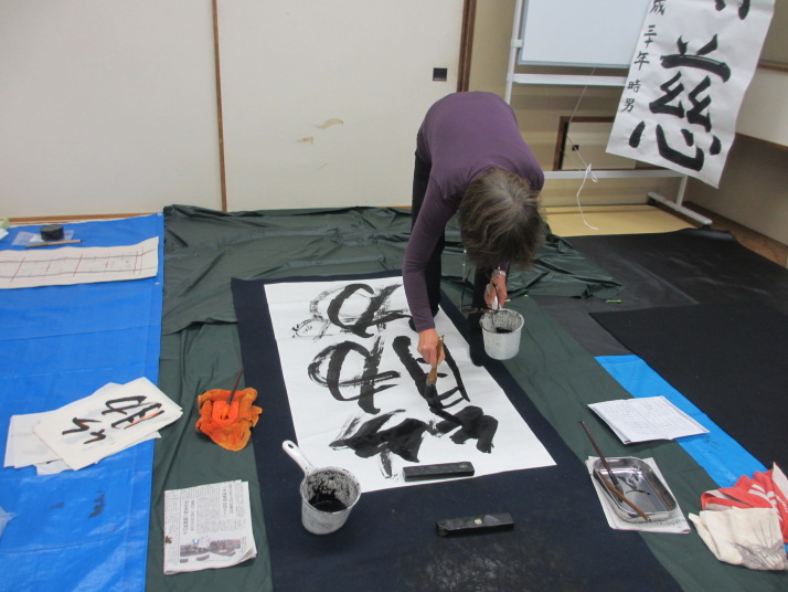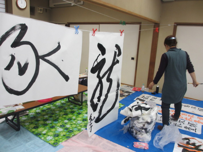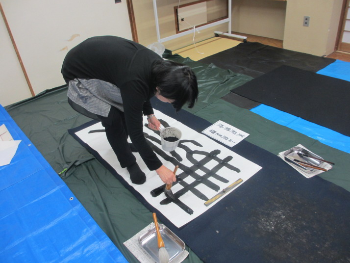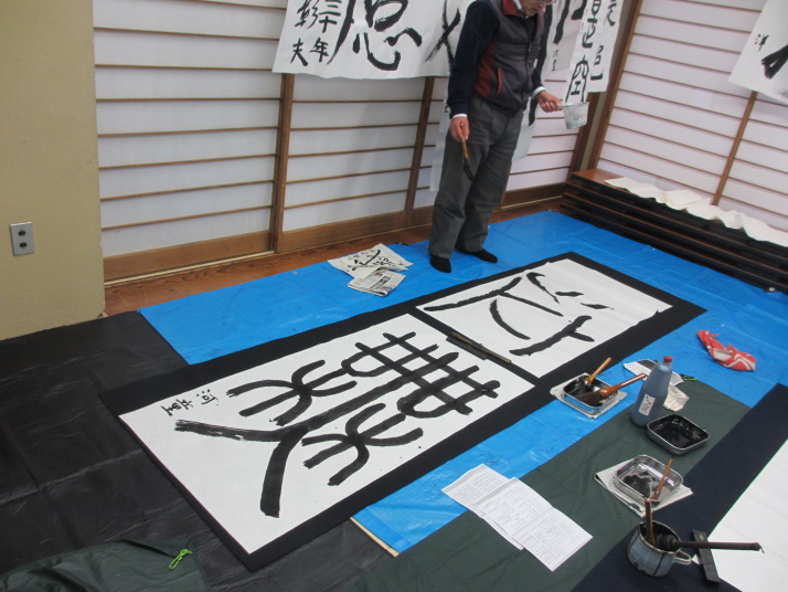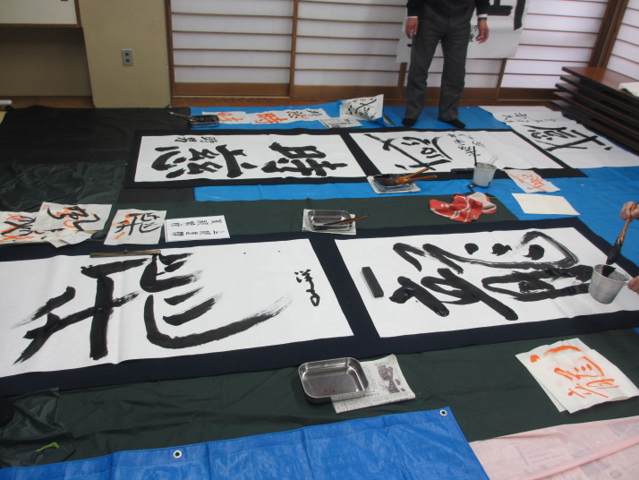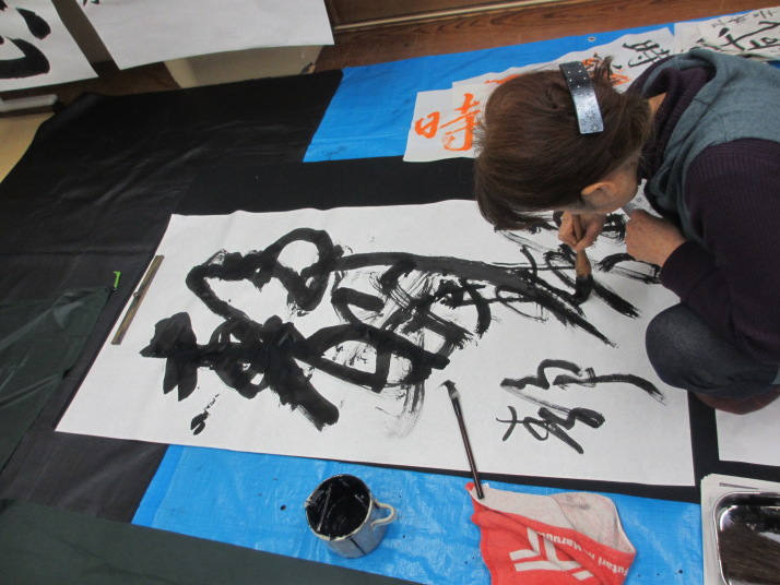内容: ・今日は部屋にブルーシートを敷き詰めて、全紙を使った書初め