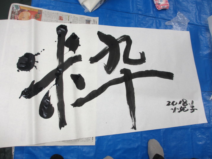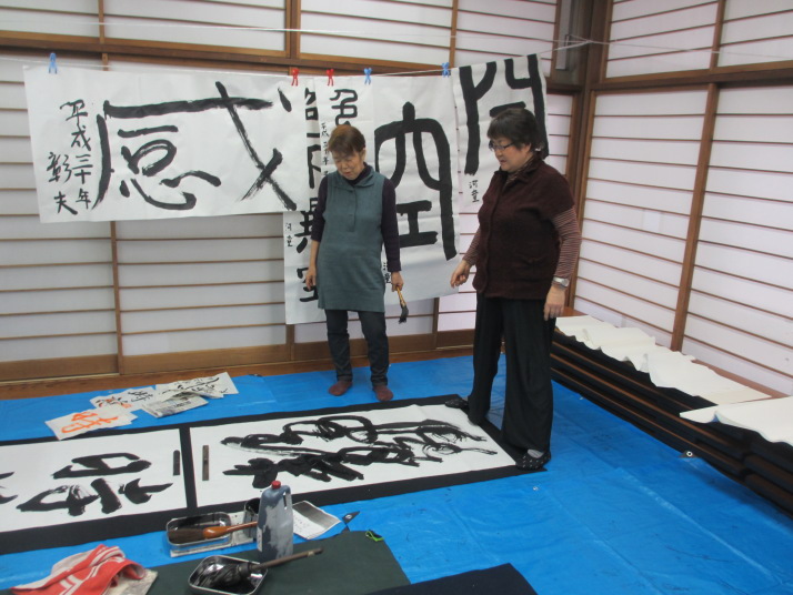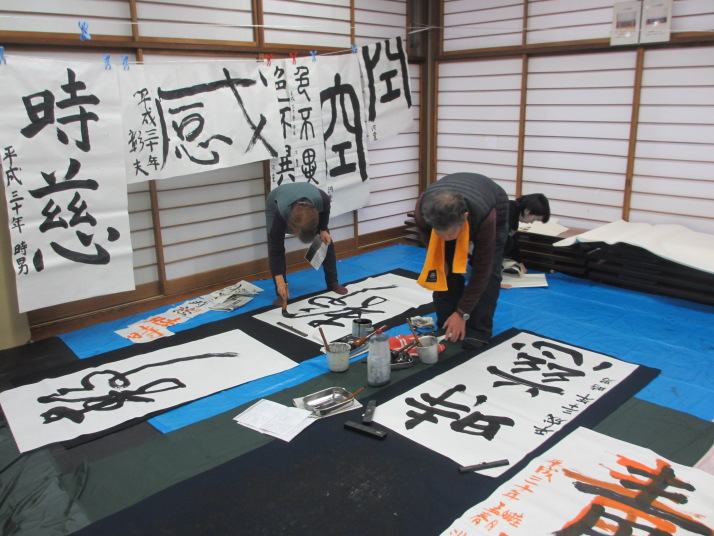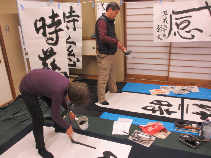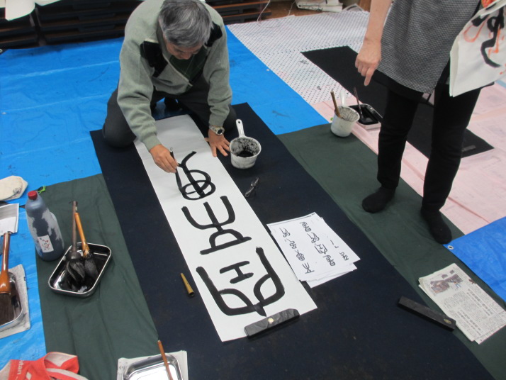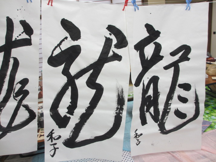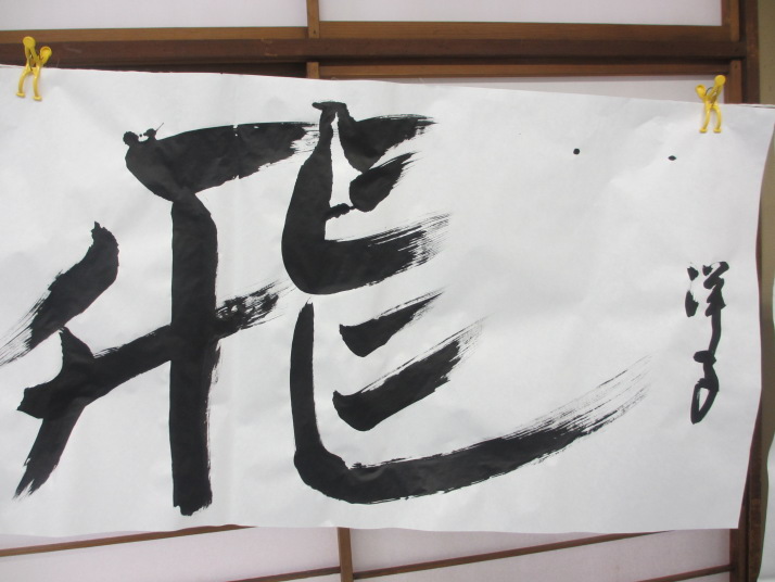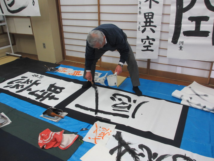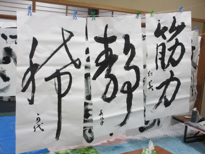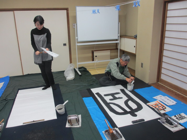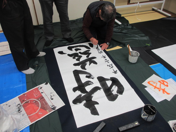 内容: ・今日は部屋にブルーシートを敷き詰めて、全紙を使った書初め