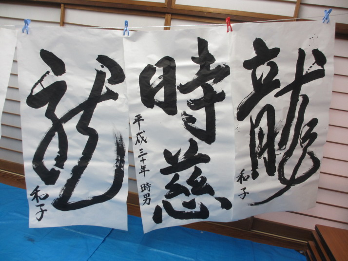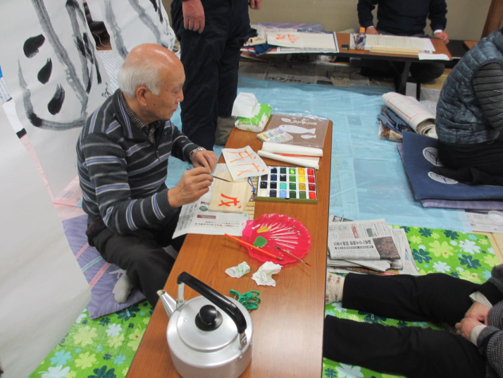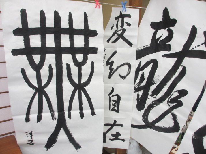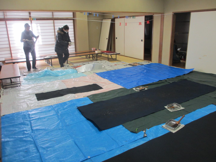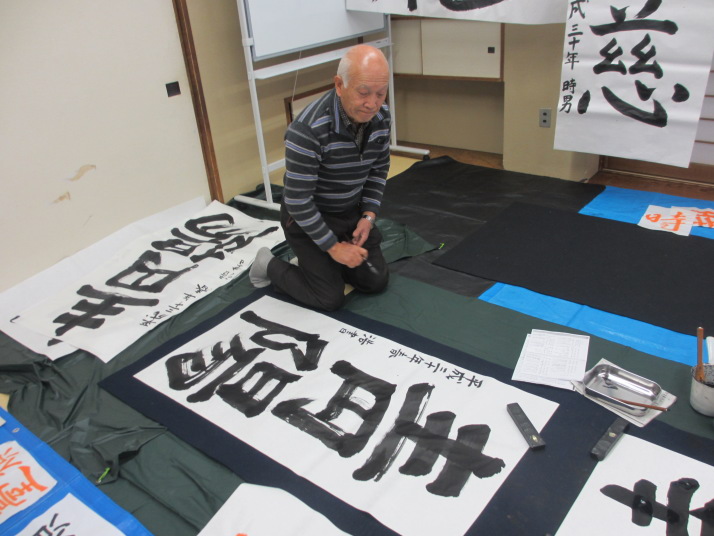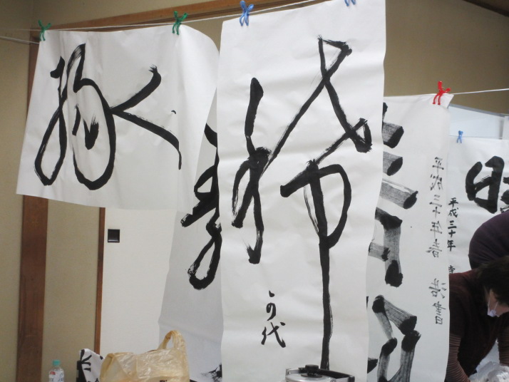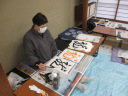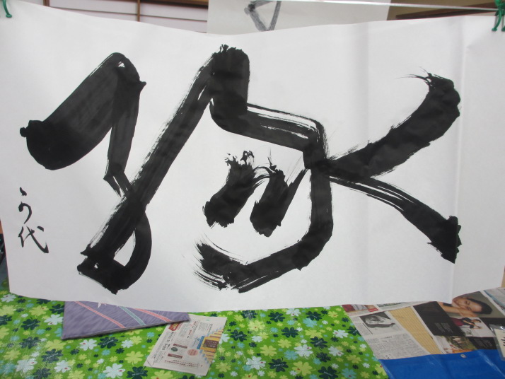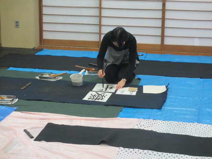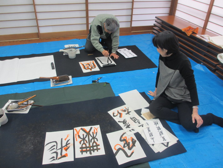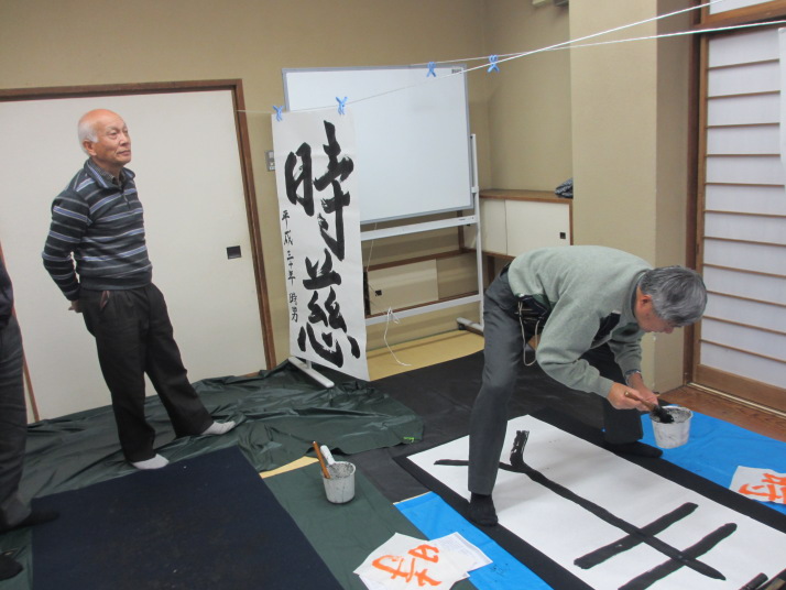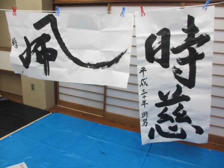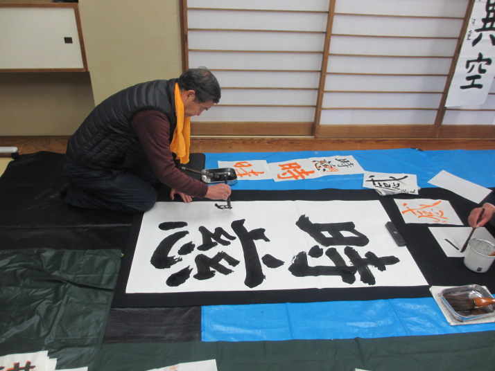 内容: ・今日は部屋にブルーシートを敷き詰めて、全紙を使った書初め