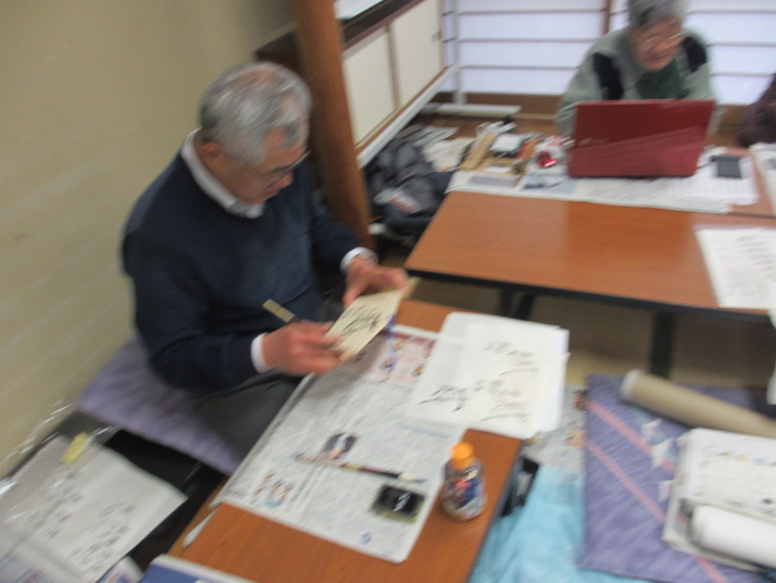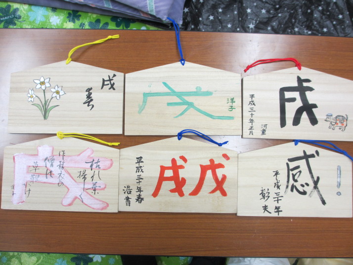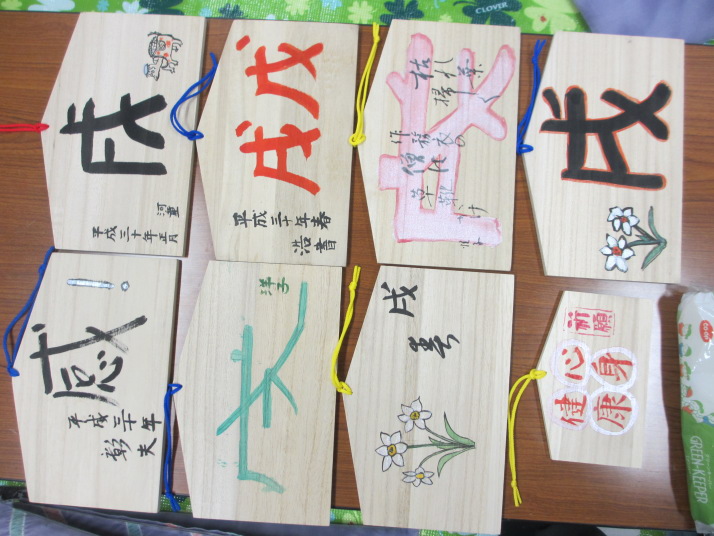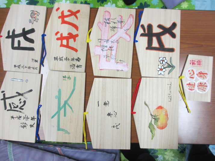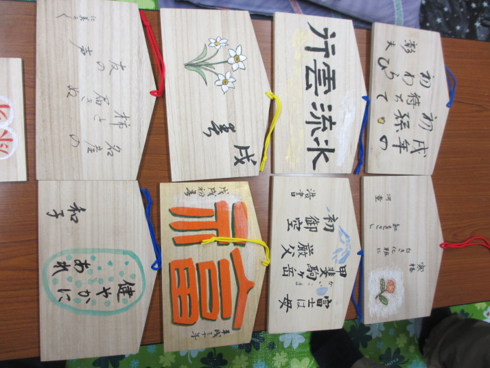 ・お師匠様が12月持ってきた書道用の絵馬を12月には時間が無く書けなかった方が作成。