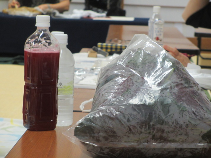 紫蘇の葉を煮出し、葉絞り、クエン酸を入れるときれいな深紅色になるそうです。