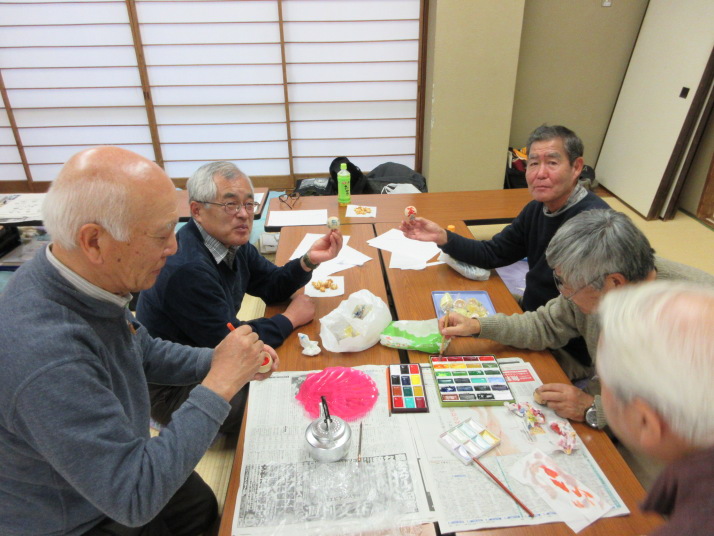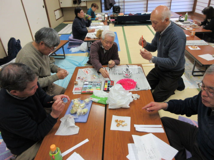 | 内容: ・今日は独楽の絵付けと俳句会なので、書道の道具は重い持ってこなかったという方もおりましたが、終わってみれば正解でした。 ・俳句会は全員参加でした。兼題は小春、小春日、小春日和、小六月 ・俳句の前後で、独楽の絵付け。この独楽は回転中にひっくり返るという逆立ち独楽でした。購入した先生も回すまで、全く気が付かなかったそうです。 ・おやつはあられと買い出しのIさんの目に止まったプチクリスマスケーキ(流石、Iさん目の付け所がGood!)でコーヒータイム ・内藤農園の産地直送野菜は・・・・・ホウレンソウとチンゲンサイ ・反省会は何時ものゆかり、2時間限定で3階の隅の席にに押し込まれましたが、帰るまで周りは空席でした。 ・帰りに、関岡、内藤、山本の2人で代々木公園通りの「青の洞窟」イルミネーションを見て、渋谷駅に出ました。 |