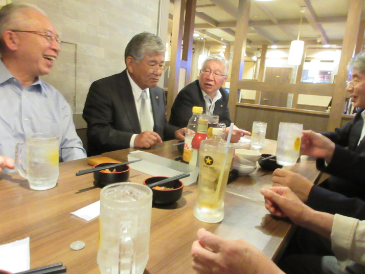開催日:2019年7月6日 開催場所:京王プラザホテル 参加者:3組 深沢 克、5組 山本 秀彦、7組 新藤 久和、7組 手塚 彰夫、8組 清水 俊夫 8組 望月 義時、10組 風間 省二、11組 丹沢 良治、12組 梶 圭子 山梨から4名(進藤、手塚、清水、丹沢)参加してくれました。 丹沢さんは今年の5月の甲府の同窓会で副会長に就任しました。