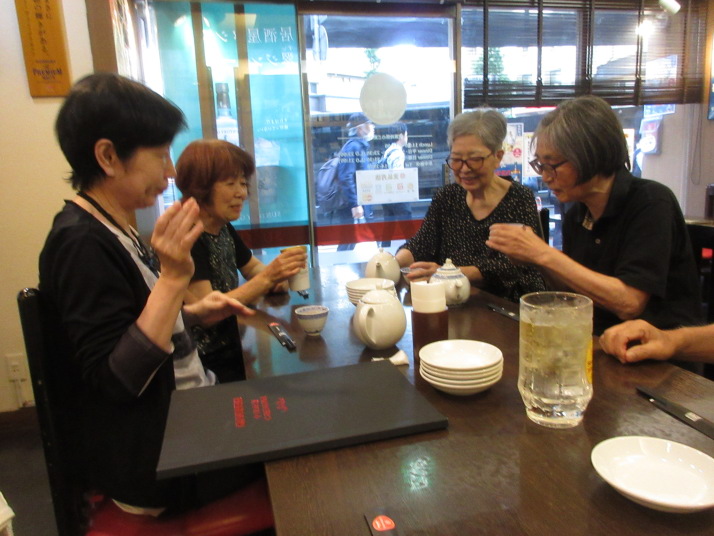| 内容: ・本日レポーターはは、先月18日の甲府同窓会から、善光寺写経・信濃路の旅、あおぞら共和国草刈り、実家の農作業、 県人会連合会、大学の東京支部同窓会と続いた行事の疲れで、全く、気が入りませんでした。今日は休日と割り切って、 千字文の2枚目、3枚目で終わりとなりました。 三時のおやつで、頭脳への栄養も補給しました。 ・何時もの様に、内藤農園から産地直送の、ニンニクとちじみレタス ・慰労会は池尻大橋駅近くの中華 C-MEN-HAN 5月の善光寺写経・信濃路散策の思い出話に花が咲きました。 ・会議室では飲食禁止なので、建前はティータイムは無、 しかし、今日もお菓子がいっぱい 昼食はレストランあり。弁当はラウンジで。 テイクアウトメニューも有ります。 |