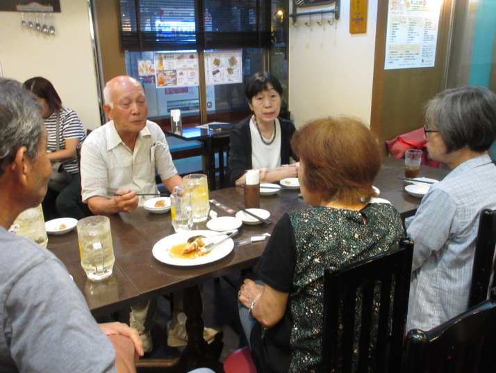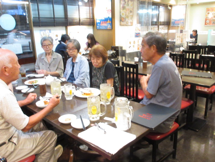 | 内容: ・8月24日の、S41同期会「喜寿を祝う会」の話で、盛り上がりました。卒用アルバム、当日スナップ、ひとこと帳なども配布。 教室のエアコン修理完了 ・何時もの様に、内藤農園から産地直送の、ナス、エダマメ、ミョウガ、モロヘイヤ 輸送用に購入(寄贈)した布製大きさ調整可能キャリーバッグのお披露目 ・慰労会は池尻大橋駅近くの中華 C-MEN-HAN ・会議室では飲食禁止なので、建前はティータイムは無、 しかし、今日もお菓子がいっぱい 紀州銘菓ゆずもなか、羽二重もち、恵那川上野饅頭、ミニクリームパン