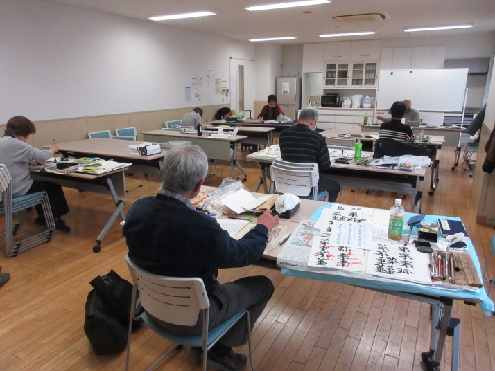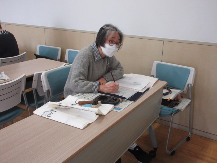 | 書道教室 2025年3月11日(火) コロナ禍収束後 再開第17回目 | ||