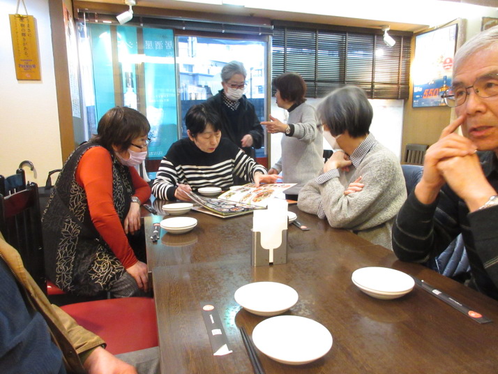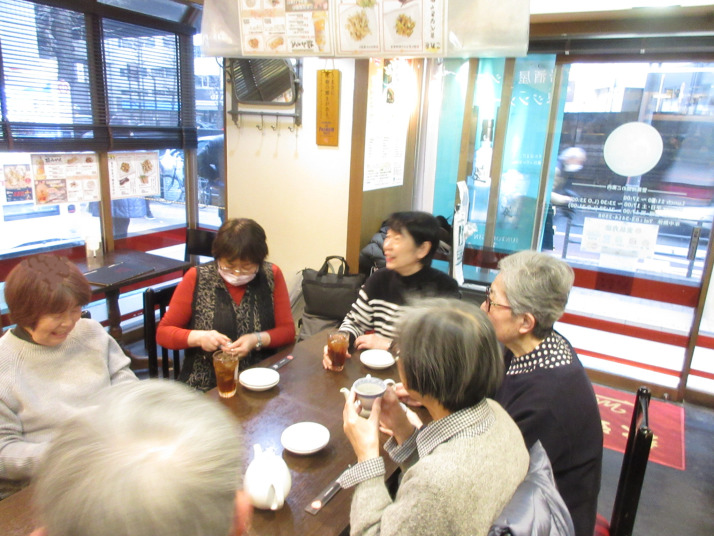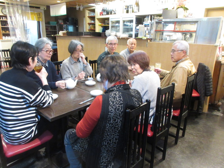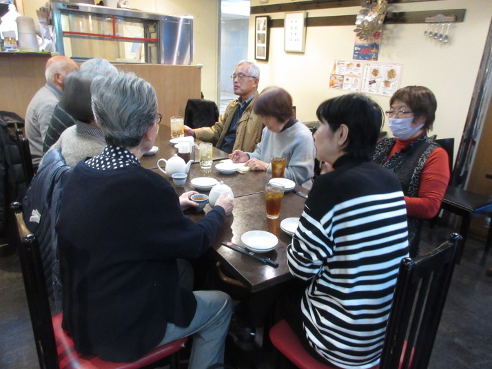 | 内容: ・1年ぶりに、明石から手塚さんが「たこ煎餅」を携えて、参加 ・今日は各自のテーマにて。 ・午後からは、春の俳句会・・・・冬(新年)の俳句会はパスしました。 ・何時もの様に、内藤農園から産地直送 大根、大根の葉、菜花、 ・慰労会は池尻大橋駅近くの中華 C-MEN-HAN 誕生月の伊藤さんが手際よくオーダー ・もぐもぐタイムは、 川越名菓ぽくぽく、明石のタコ煎餅、しるこサンド、アブランチュール、、アルフォート、プチクリ-ムパンと盛り沢山 |