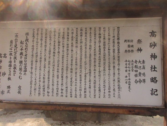 ・高砂駅から 徒歩で 高砂神社(謡曲 高砂の由来 相生松と尉と姥) 見学し駅に戻る
