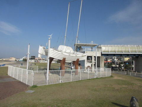 舞子海岸 公園 モニュメント 夢レンズ の前にて |