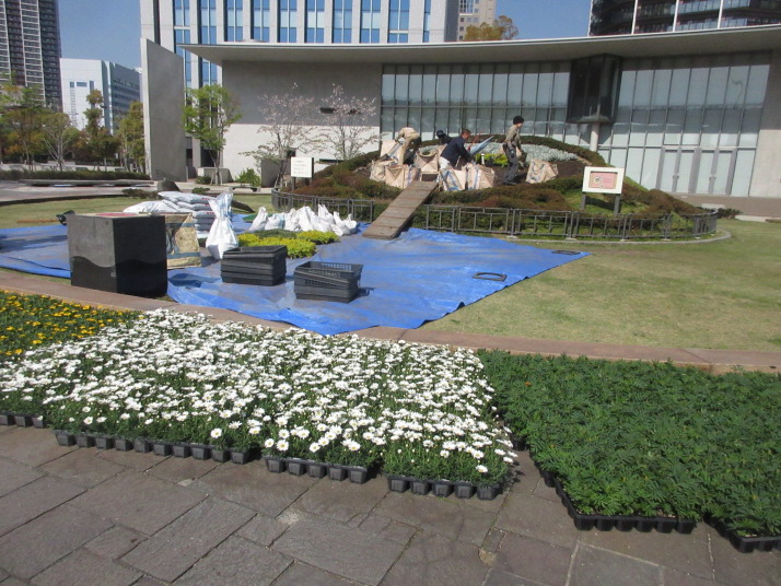 ・さんちかを歩き、神戸市役所ビルで地上へ 三宮東公園 震災・復興祈念公園 花時計(植栽の入れ替え工事中)