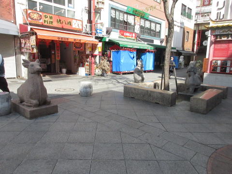 元町中華街の公園 十二支の石造が有が、何故かパンダも |