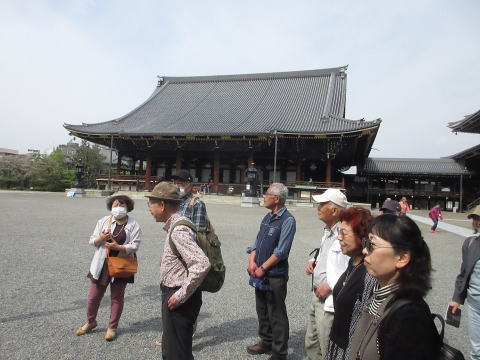 ![]() 東本願寺 阿弥陀堂前にて朝の参拝案内に参加 |