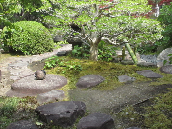 観智院 茶室から見る 止め石 と 猪威し |