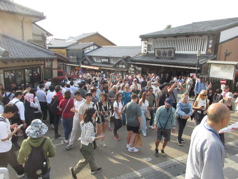 清水坂から清水寺への入り口付近の人混み |