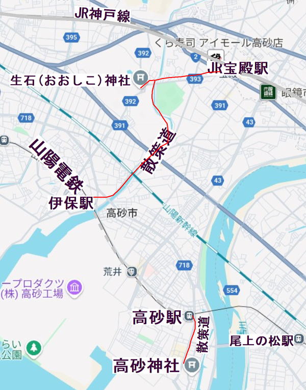 ・徒歩で 山陽電鉄 伊保駅へ 電車で2駅目 高砂駅で下車 2.4km 200円
