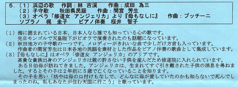 5番 梶圭子 浜辺の歌・子守歌・「母もなしに」 |