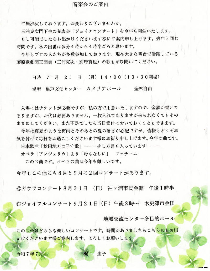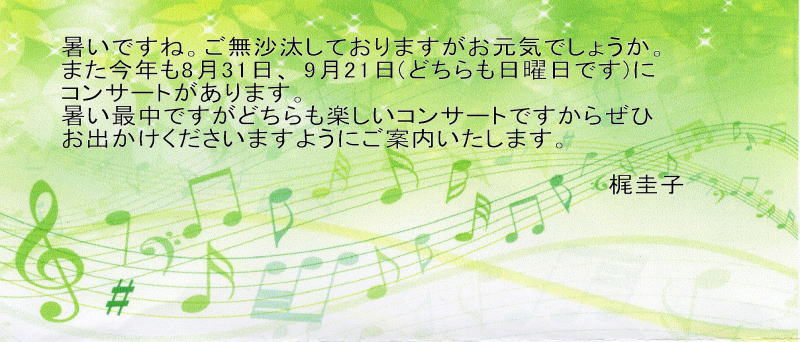 2025年 梶圭子さん(12組)出演のコンサート 2025.09.01更新