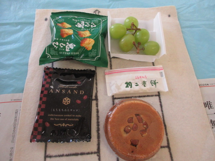 | 内容: ・今日もがらがや館の3階-A会議室 ・一人一卓で各自のテーマにて。午後から俳句会 手塚、菅野はメール参加、鈴木さんは関岡便で兼題は[豊作、豊年、出来秋、豊の秋 ・何時もの様に、内藤農園から産地直送マクワウリ(最近は店で見ません)、モロヘイヤ、かっぱブドウ園から坊ちゃんカボチャ ・慰労会は池尻大橋駅近くの中華 C-MEN-HANへ戻りました。ホテルが営業再開したので、このレストラン営業は問題なし ・もぐもぐタイムは、鬼ひび、羽二重もち、七尾の太鼓煎餅、シャインマスカット、百万石情話(アンサンド) と盛りだくさん |