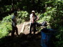 | 君恋温泉 | 14:20 | 山道の看板に案内され温泉へ、まっしぐら。不動滝横の道が崩落で、20分以上 の回り道。温泉で汗を流して、後はビールだ。こんにゃく、サトイモ、竹の子 の煮しめも大盛りで、美味しかった。どんな温泉かって・・・お楽しみ。 |