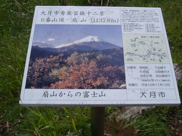 | 扇山 山頂 | 12:25 | 日差しが雲間に隠れて、助かった。直射日光は紫外線100% |